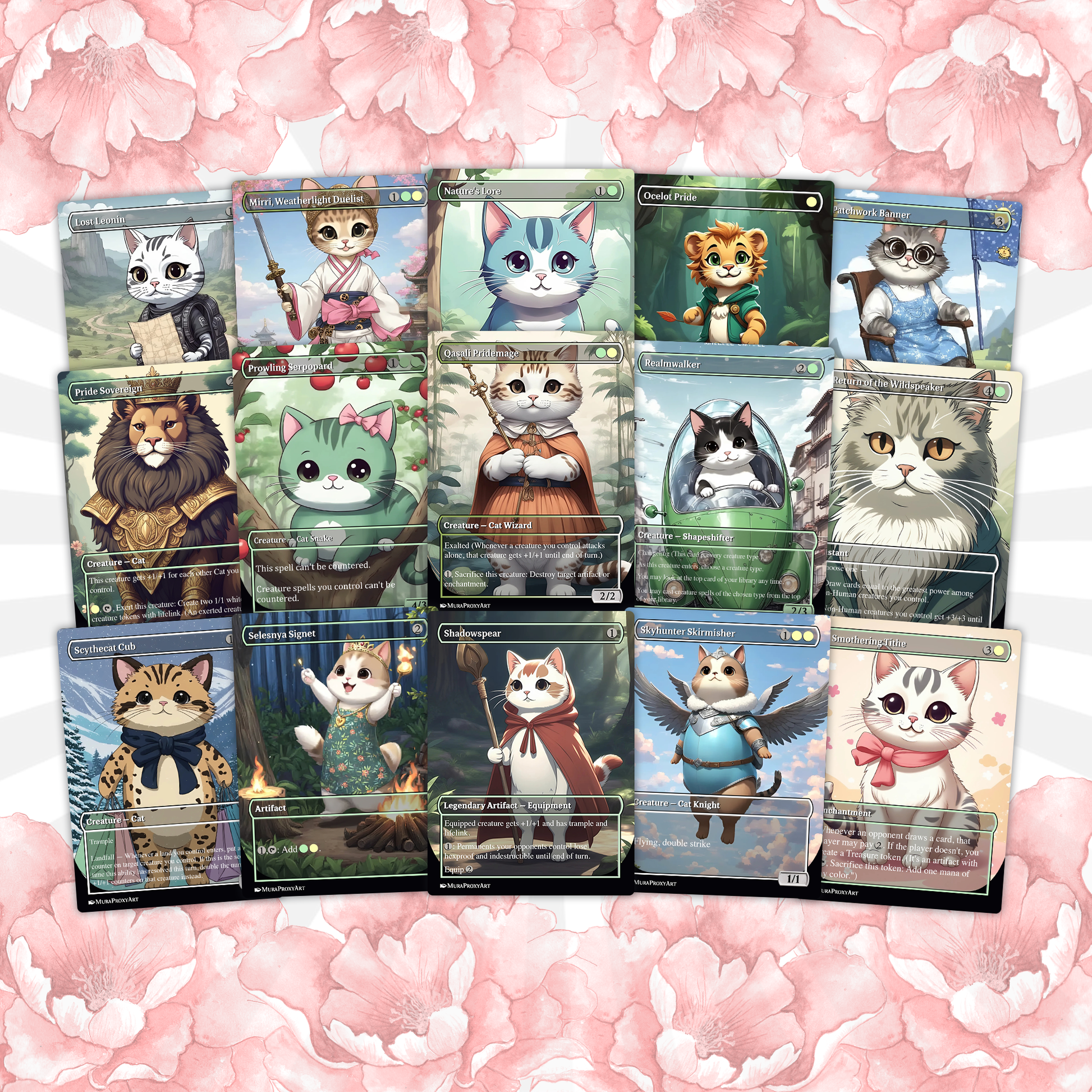 mtg cat tribal, commander deck, custom mtg proxy, cute animal deck, full art mtg, edh cat deck, mtg waifu animal, kitty tribal edh, proxy magic cards, casual commander deck