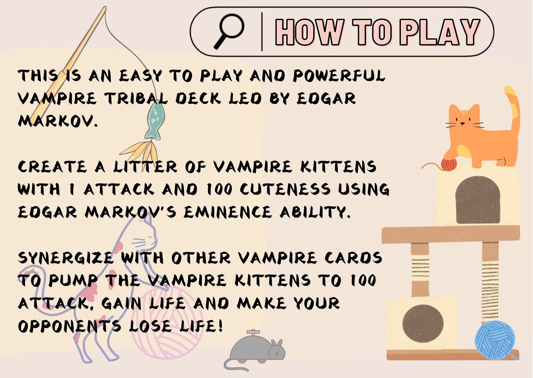 Love vampires and spooky cute art? This deck brings Edgar Markov to life with an adorable twist — vampire kittens! Whether you’re summoning tiny fanged furballs or swinging with bloodthirsty creatures, this deck makes EDH fun, flavorful, and full of fang.