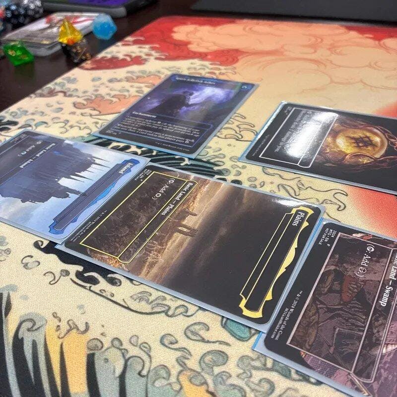 Our custom Commander decks are made in the standard card size and has rounded corners, ensuring compatibility with your collection and accessories. Measuring 63mm x 88mm (2.5” x 3.5”), these cards are designed to fit seamlessly into sleeves, deck boxes, and shuffling routines.🌟