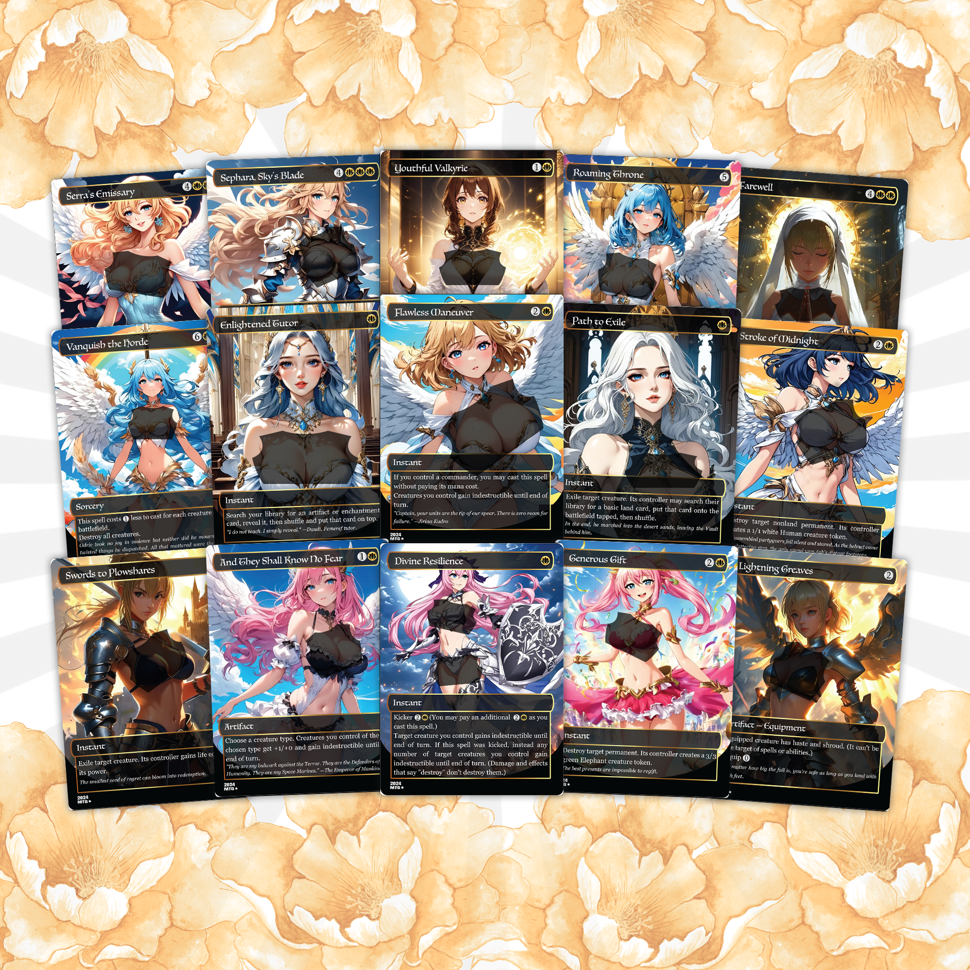 The Giada Angels Commander Deck – Anime Waifu Special Edition brings you a powerful mono-white EDH experience, centered around one of the most iconic angel commanders—now reimagined in stunning anime style. Whether you’re a fan of lifegain, aerial control, or bold character art, this 100-card custom deck is designed to fly above the rest.