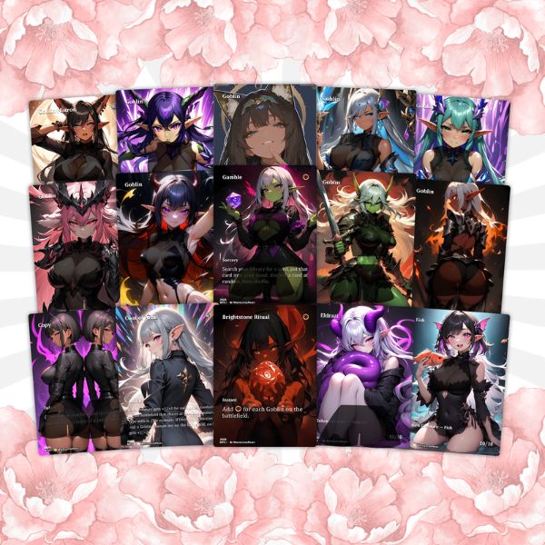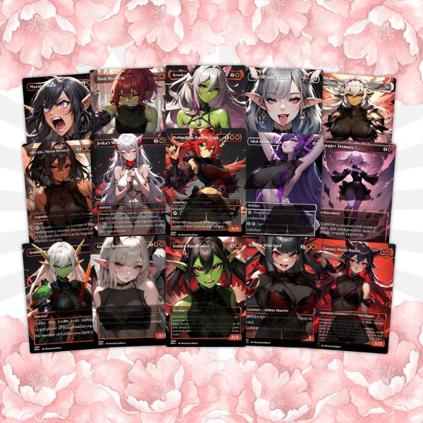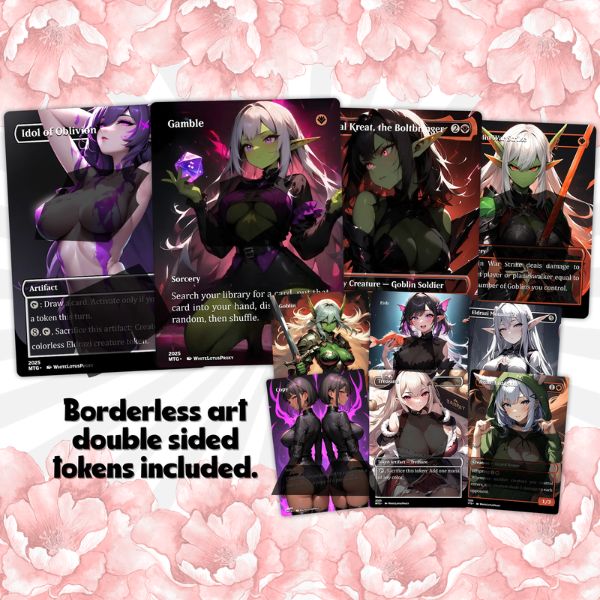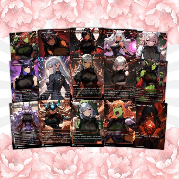 Our custom decks offer a truly unique experience, featuring fully framescustomized artwork, mana symbols, etc... designed to enhance the theme and style of each deck. Every card is meticulously crafted to provide a one-of-a-kind aesthetic while maintaining the quality you expect for seamless gameplay.