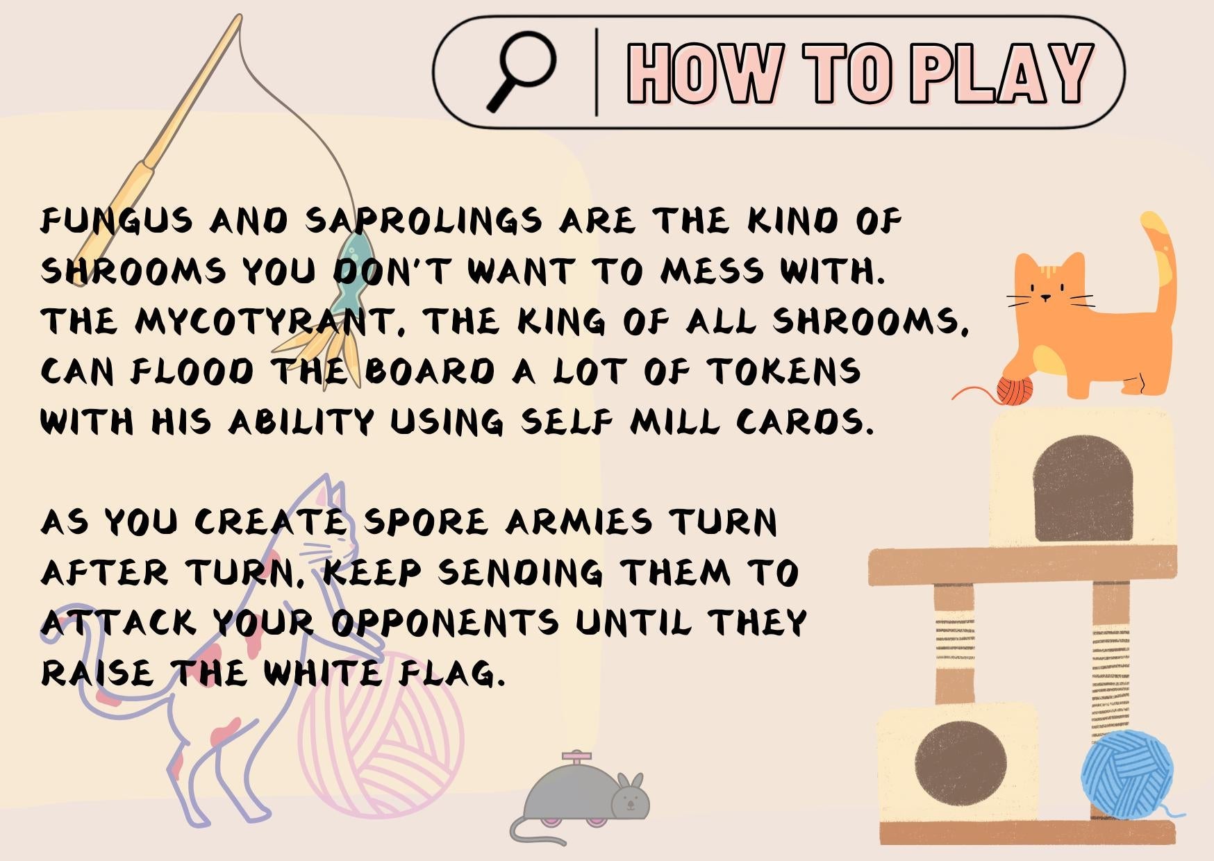 Spore up and swarm down! This custom Mycotyrant deck floods the field with adorable fungus and saproling tokens using a self-mill strategy — all wrapped in irresistibly cute art.