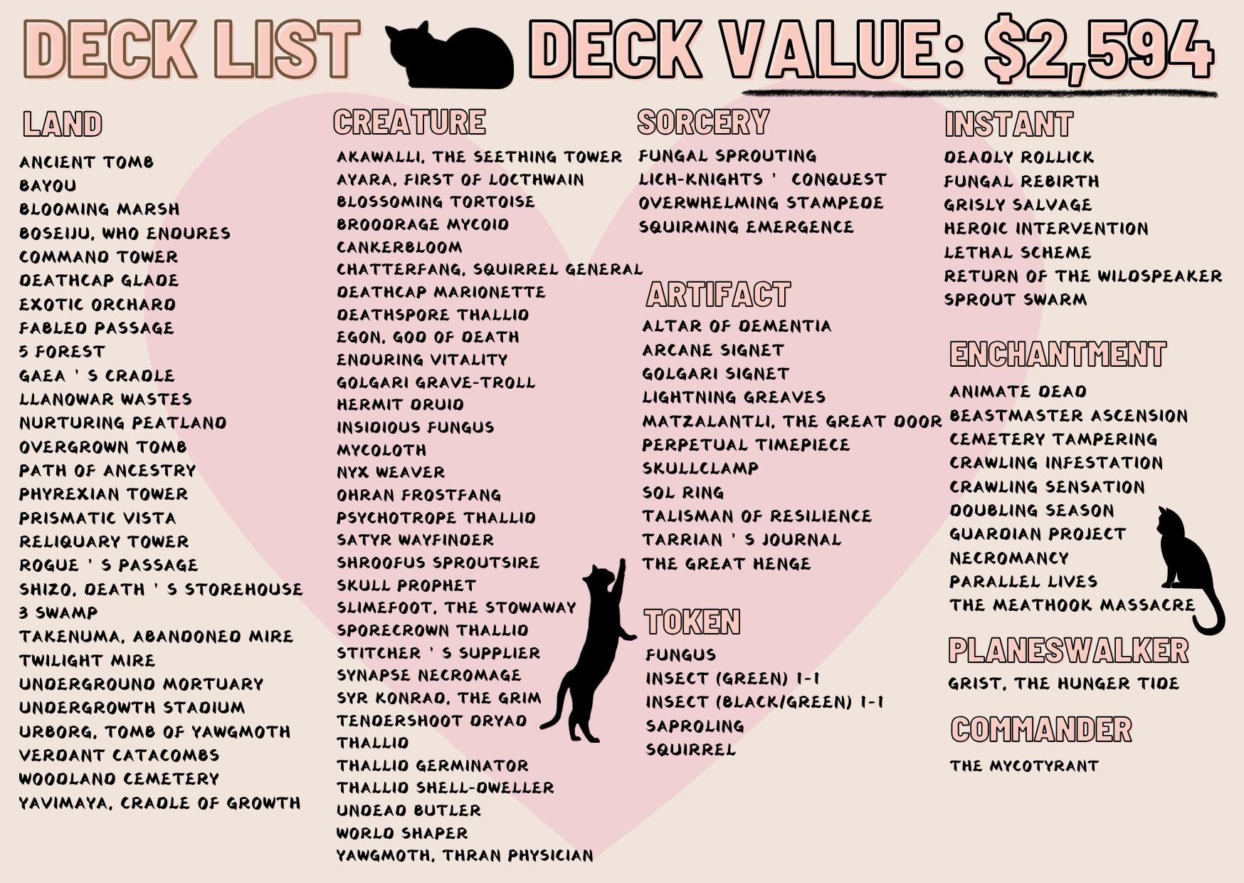 Mycotyrant Self Mill Proxy Commander Deck, 100 Cards + 6 Free Tokens | Cute Custom Full Art | MuraProxyArt