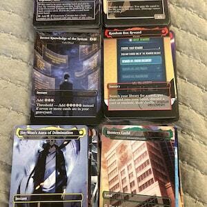 Our custom decks offer a truly unique experience, featuring fully frames, customized artwork, mana symbols, etc... designed to enhance the theme and style of each deck. Every card is meticulously crafted to provide a one-of-a-kind aesthetic while maintaining the quality you expect for seamless gameplay.