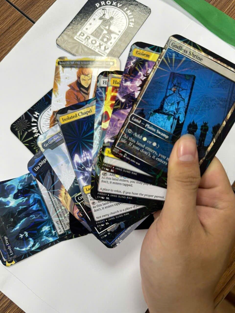 Our custom decks offer a truly unique experience, featuring fully framescustomized artwork, mana symbols, etc... designed to enhance the theme and style of each deck. Every card is meticulously crafted to provide a one-of-a-kind aesthetic while maintaining the quality you expect for seamless gameplay.