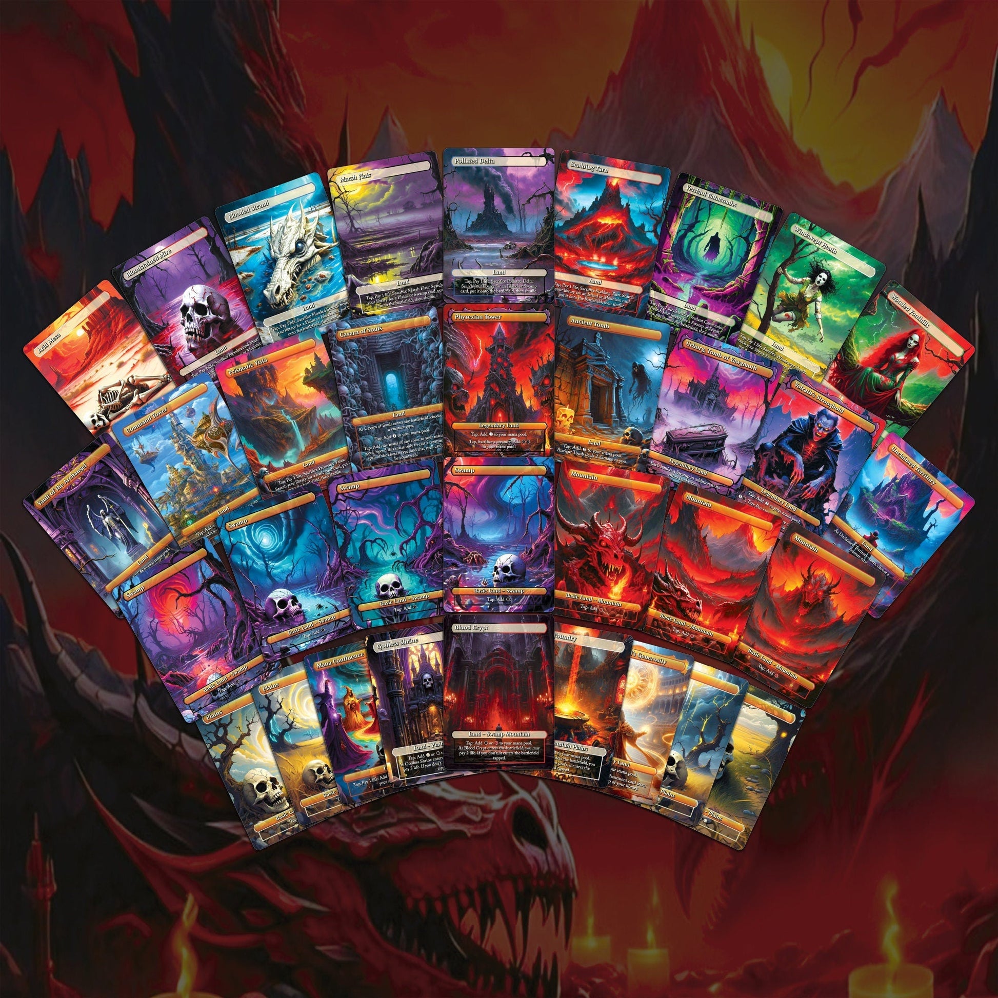 Our custom decks offer a truly unique experience, featuring fully framescustomized artwork, mana symbols, etc... designed to enhance the theme and style of each deck. Every card is meticulously crafted to provide a one-of-a-kind aesthetic while maintaining the quality you expect for seamless gameplay.