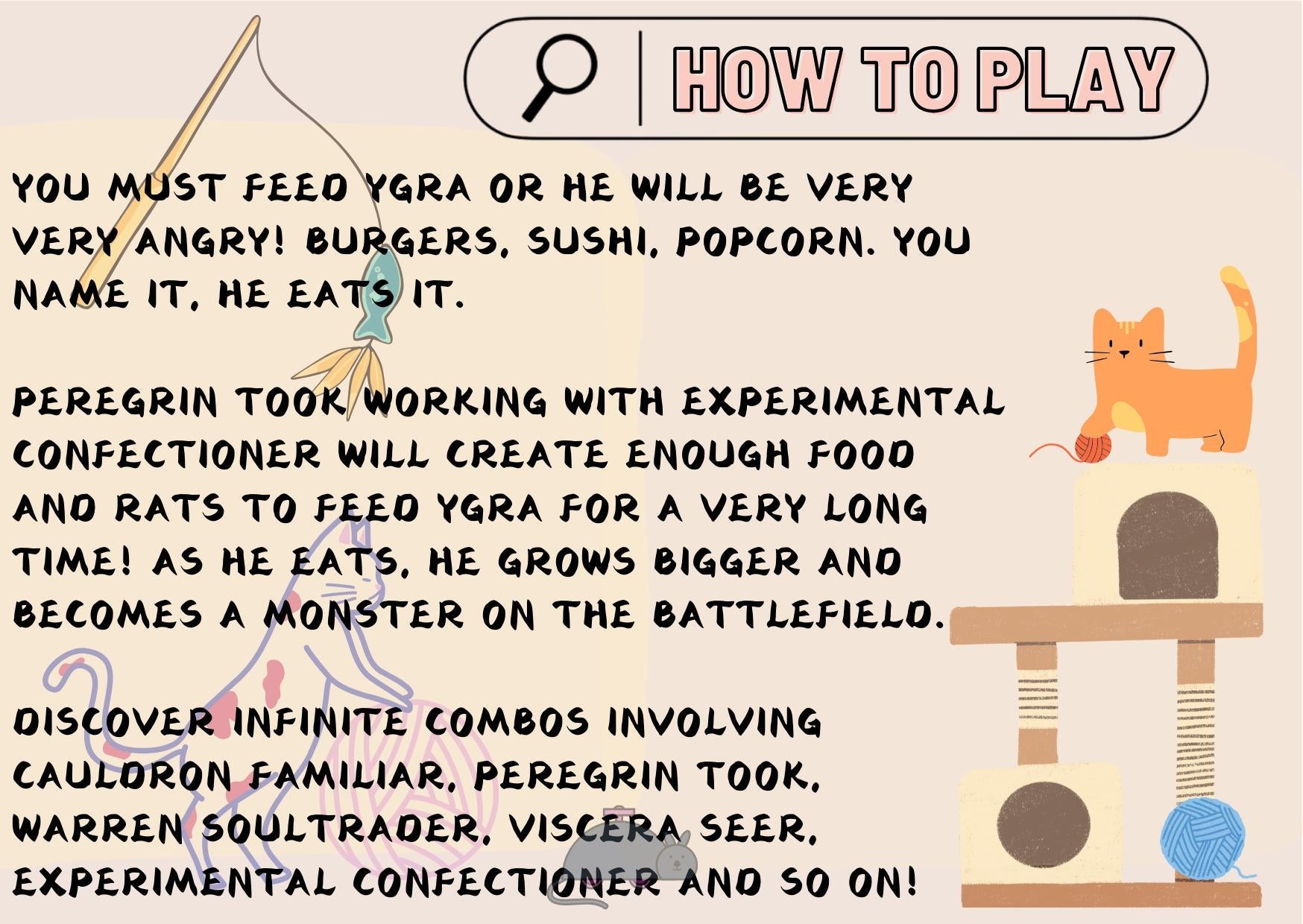 Ygra needs food—lots of it! This deck creates an endless supply of Food, Rats, and Squirrels with combos like Peregrin Took + Experimental Confectioner. Feed Ygra and let him grow into an unstoppable force. Use cards like Finale of Devastation to finish the feast and the match!